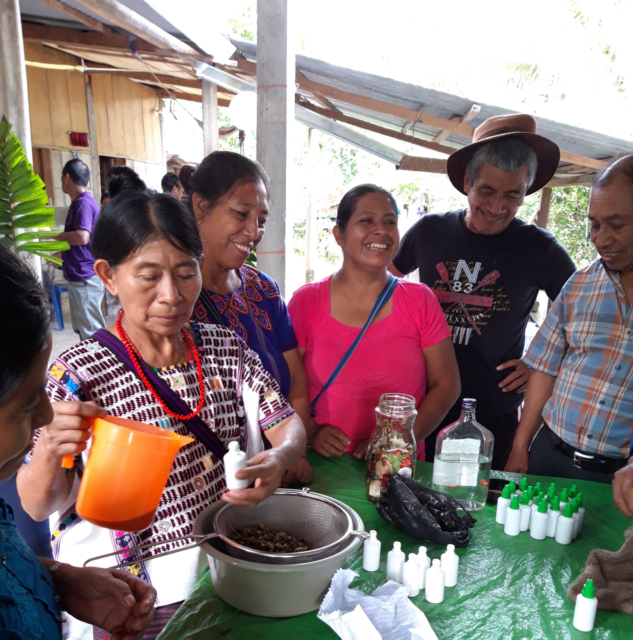 Die von der AGPD organisierten Ausbildungskurse in Pflanzenheilkunde sind seit der neuesten Gesundheitskrise noch gefragter und das Angebot konnte auf weitere Gemeinden ausgebaut werden. Die Arbeit mit Heilpflanzen verleiht den AGPD-Mitgliedern neuen Tatendrang. Sie steht im Kontext der historischen Erinnerung und der Wiederbelebung des traditionellen Wissens der Maya-Bevölkerung und trägt somit auch zur seelischen Heilung der Traumata aus dem internen bewaffneten Konflikt bei. Neben Kenntnissen zur Wirkung von Heilpflanzen und der Herstellung von Naturheilmitteln legen die Kurse den Schwerpunkt auf eine ausgewogene Ernährung als Basis für eine gute Gesundheit. Guatemala hat eine der höchsten Raten an chronischer Mangelernährung weltweit. Die Fehlernährung führt zu einer erhöhten Rate an chronischen Krankheiten wie Herz-Kreislauf Problemen oder Diabetes. Unter dem Leitsatz Kochen für eine gute Gesundheit lernen die Kursteilnehmenden, wie sie ihre Essensgewohnheiten mit einfachen Rezepten verändern können und welche Nährstoffe und therapeutische Wirkungen lokale Früchte, Gemüse und Kräuter besitzen. «In einer Gesellschaft mit einer hohen Armutsrate müssen wir wieder lernen, zu essen, um uns zu ernähren und nicht nur, um zu überleben,» so der Bericht der AGPD zu den Kursen der Pflanzenheilkunde.