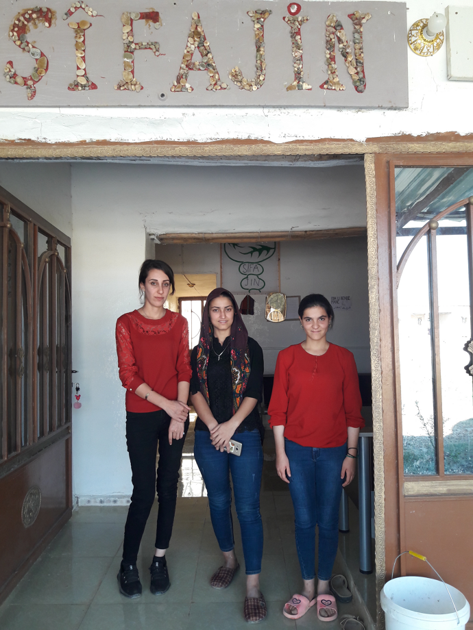 Die Gesundheitsversorgung anders zu gestalten, ist revolutionär in Rojava. Den meisten Ärzt*innen wurde in der Ausbildung eine westliche und sehr medikamentengläubige Medizin beige- bracht. Dies mag bei ernsthaften somatischen Erkrankungen hilfreich sein, ist aber bei den häufigen psychosomatischen und stressbedingten Symptomen, an denen gerade Frauen leiden, kontraproduktiv. Hier versuchen die Gesundheitsarbeiterinnen von Sifajin, mit alternativen Heilverfahren neue Perspektiven zu eröffnen. Sie streben mit einer Kombination aus westlichem und vernetztem traditionellen Wissen eine Humanisierung der Medizin an.