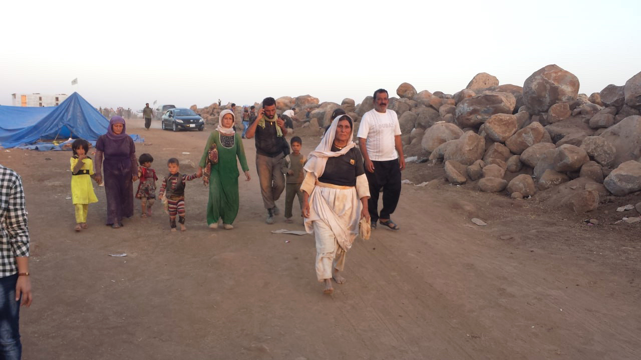 Über 100'000 Menschen flohen durch einen von kurdischen Kämpfer*innen erkämpften Fluchtkorridor vom Shengal nach Syrien – sie waren tagelang zu Fuss unterwegs. ©Heyva Sor a Kurd