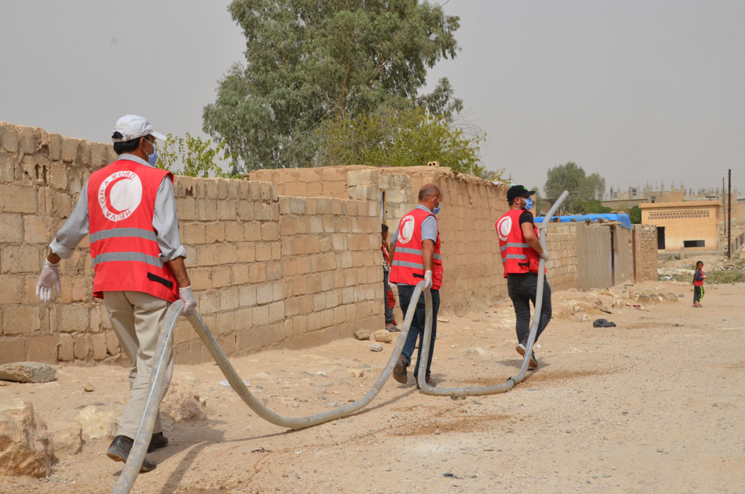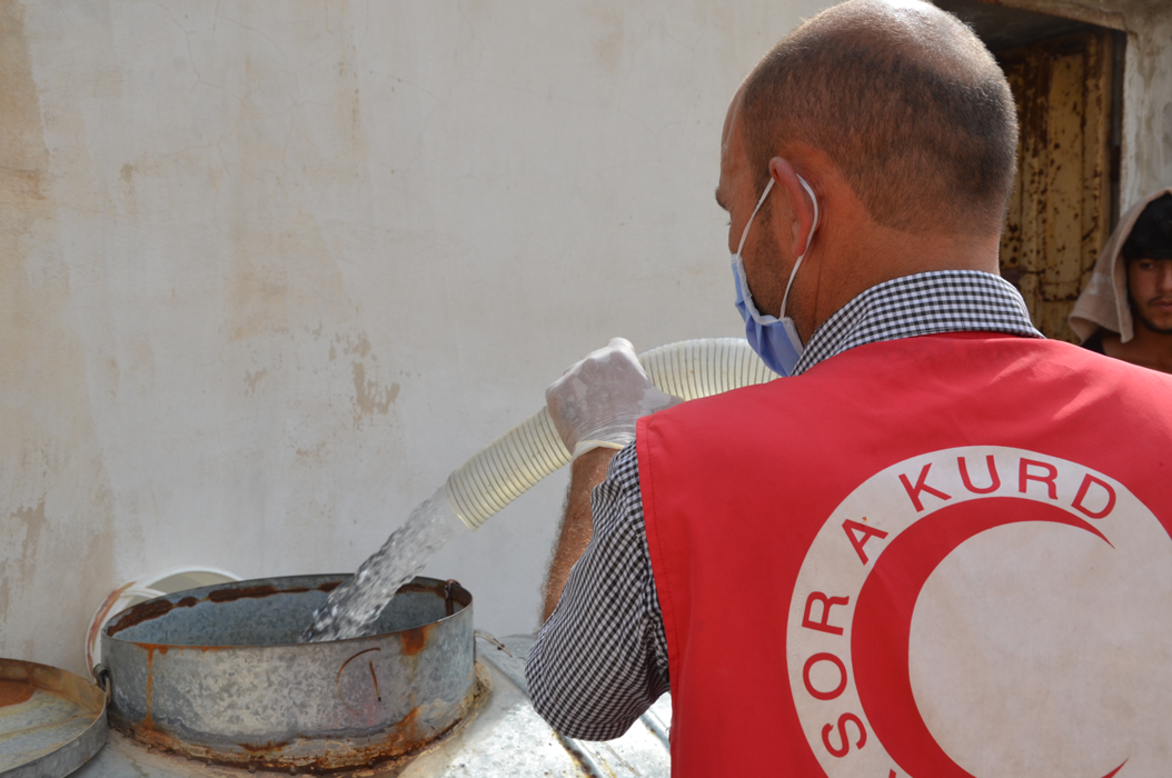 Das Team des Kurdischen Roten Halbmondes führt Informationsveranstaltungen über Hygienemassnahmen und Gesundheitsförderung in Lagern und Unterkünften für geflüchtete Menschen durch und stellt die Trinkwasserversorgung (Wasserverteilung) und die Trinkwasserqualität durch Überwachung und Untersuchung von Wasserproben in Zusammenarbeit mit dem Labor der Wasserbehörde der Selbstverwaltung in Hassakeh sicher. Zudem bietet der Kurdische Rote Halbmond in mobilen Kliniken medizinische Versorgung für Vertriebene und Menschen in abgelegenen Siedlungen an.