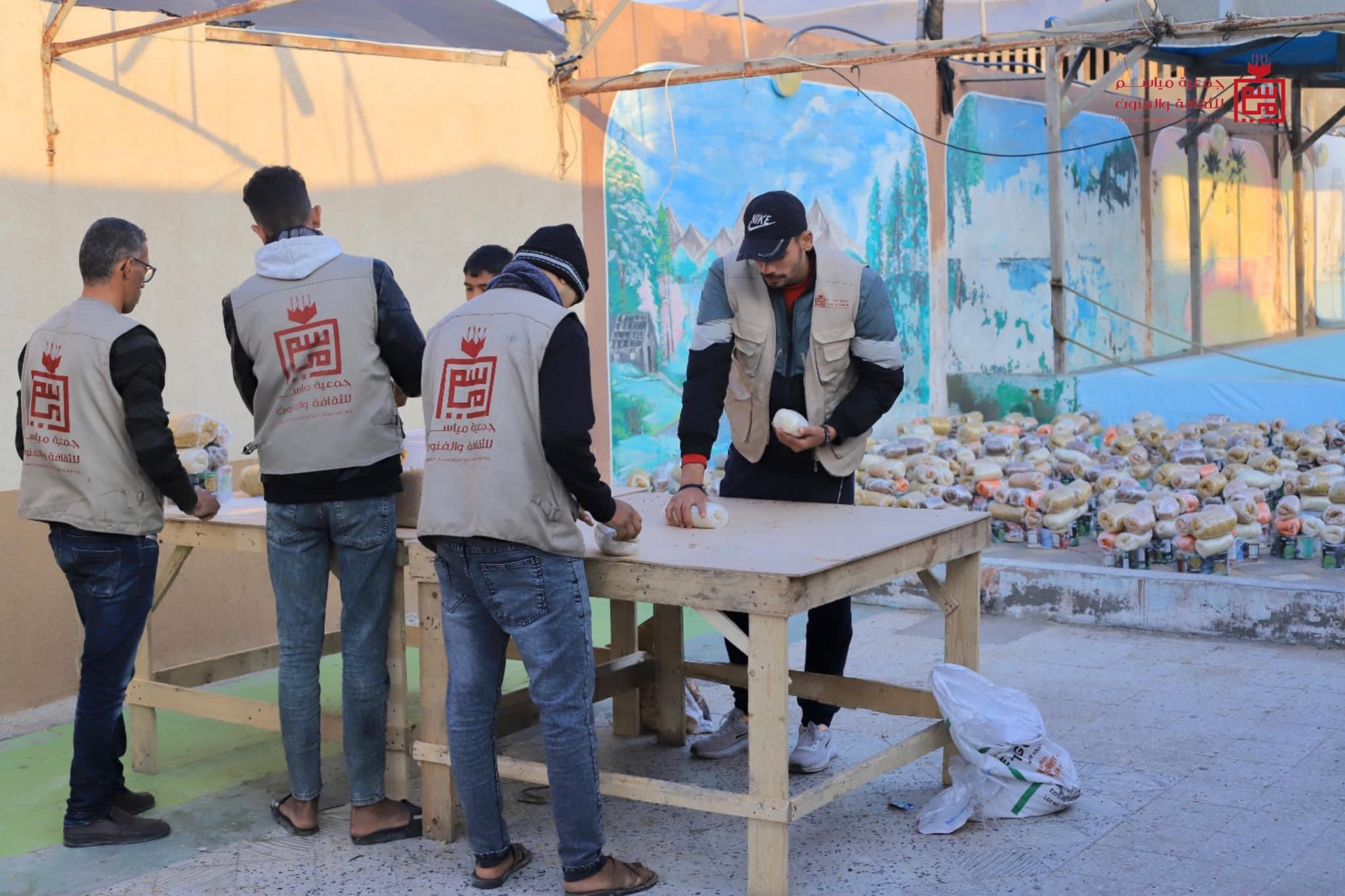Mitglieder von Mayasem bei der Bereitstellung von Lebensmittelpaketen.